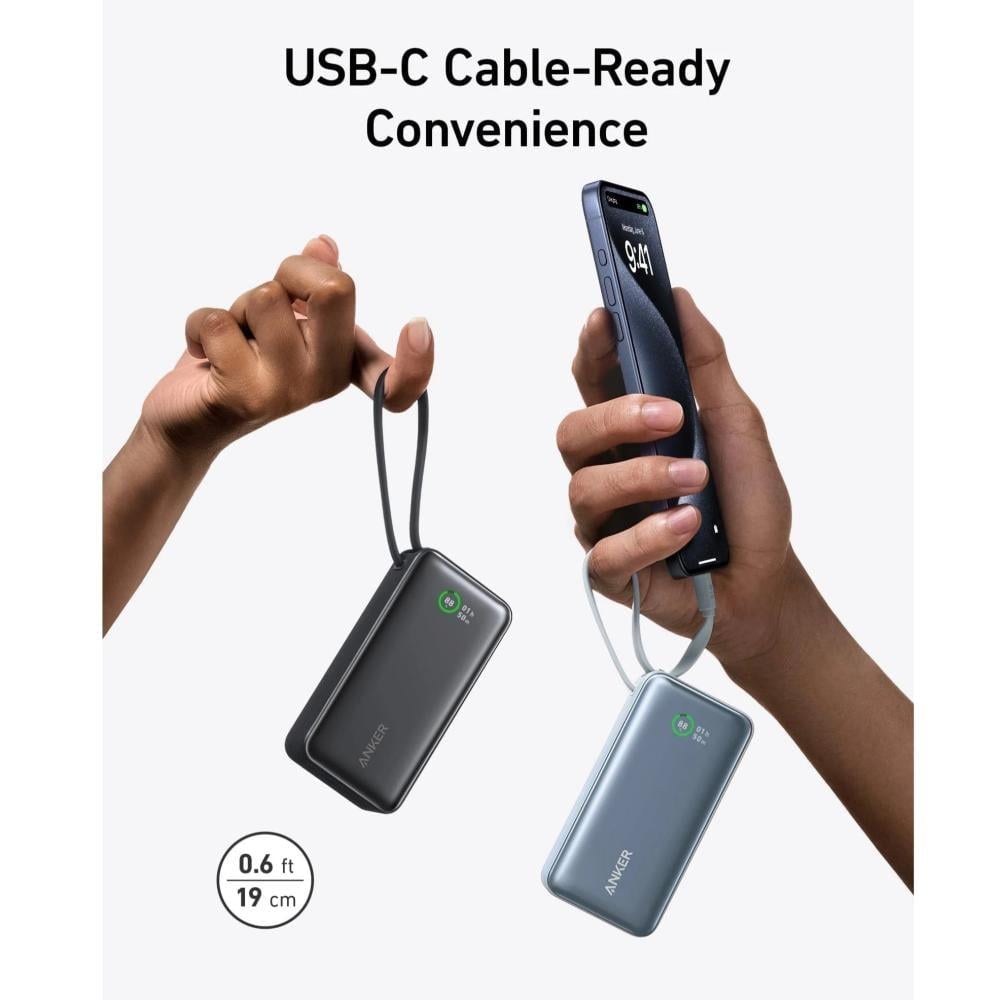 انكر باور بانك نانو 10000 ملي امبير بقوة ٣٠ واط كابل يو إس بي-سي المدمج