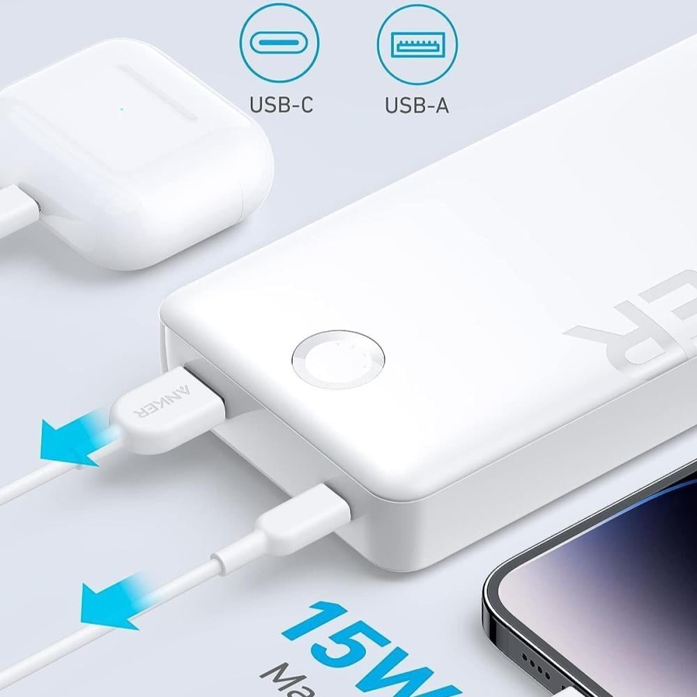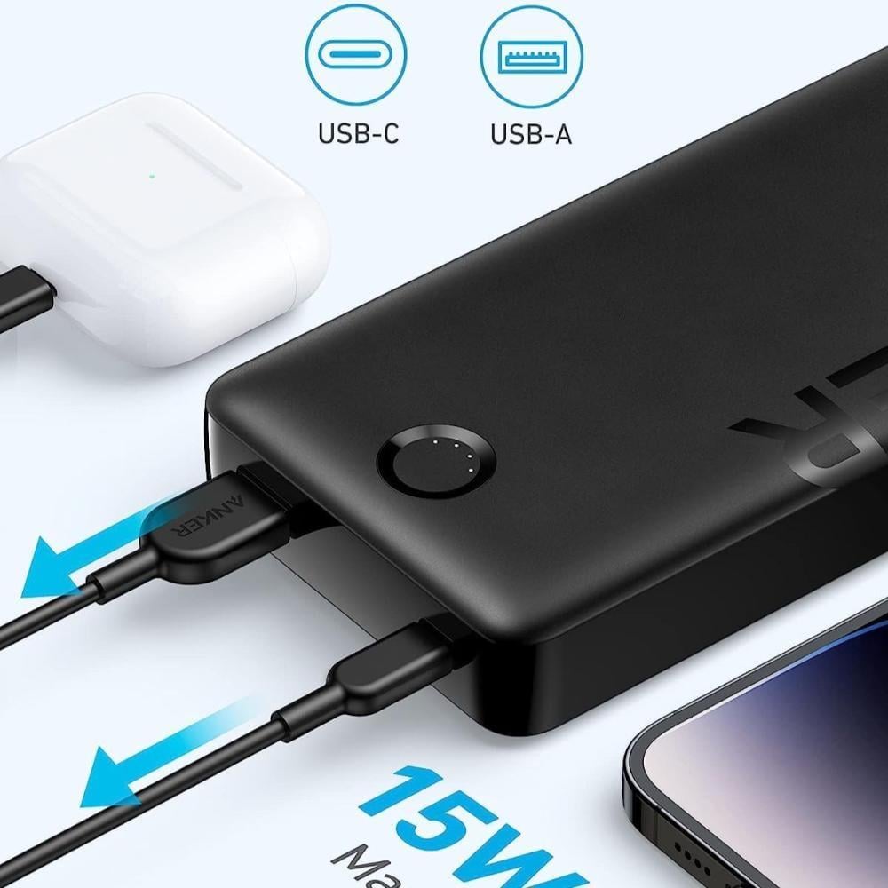 - مدمج ومريح: تم تصميم باور بانك Anker 325 مع وضع راحتك في الاعتبار. إنه صغير الحجم للغاية وخفيف الوزن وسهل الحمل، مما يجعله الرفيق المثالي للسفر أو الاستخدام اليومي.
