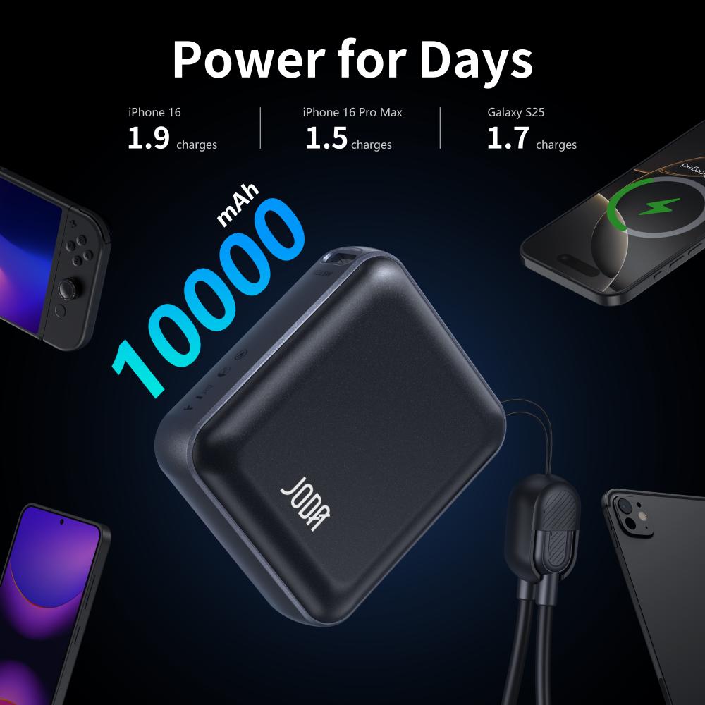 باوربانك جودا Metix 10 سعة 10000mAh قدرة 22.5W مع كيبل C مدمج أسود