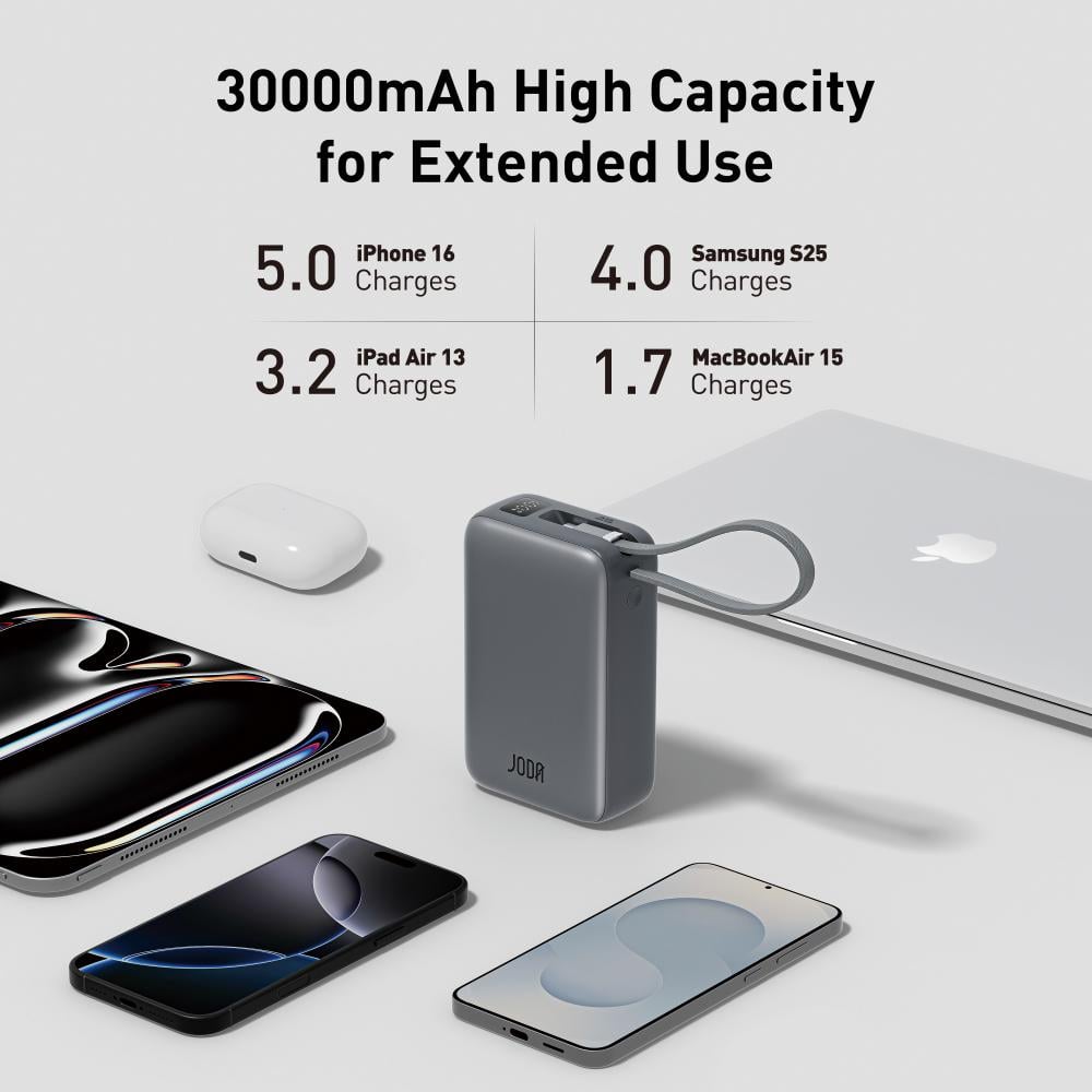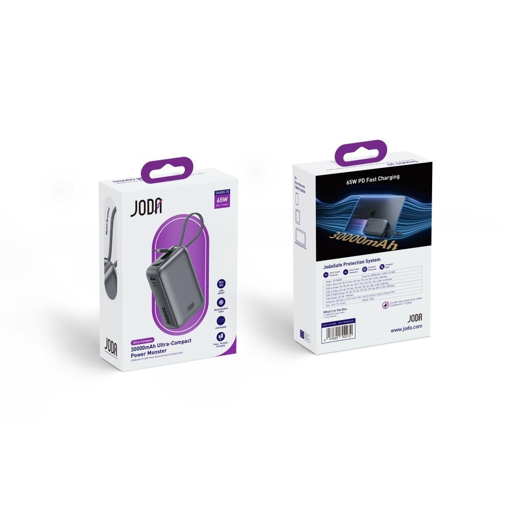 باوربانك جودا SHARG 30 سعة 30000mAh قدرة 65W PD مع كيبل نايلون مدمج