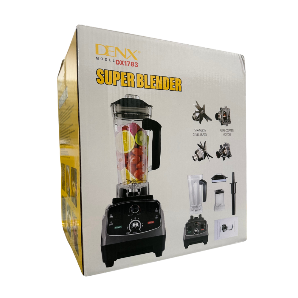 ماركة DENX مميزات خاصة محمول سعة 2 لتر مادة الفولاذ المقاوم للصدأ أسلوب حديث مصدر الطاقة سلكي كهربائي القوة الكهربائية2200 واط عدد السرعات 10وزن السلعة 500 جرام آمنة للاستخدام في غسالة الأطباق نعم
