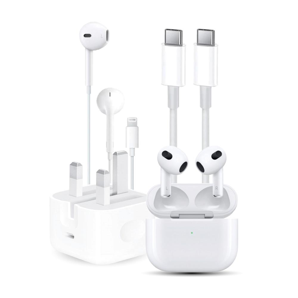سلك شاحن+ رأس شاحن+ سماعة سلك + سماعة برو