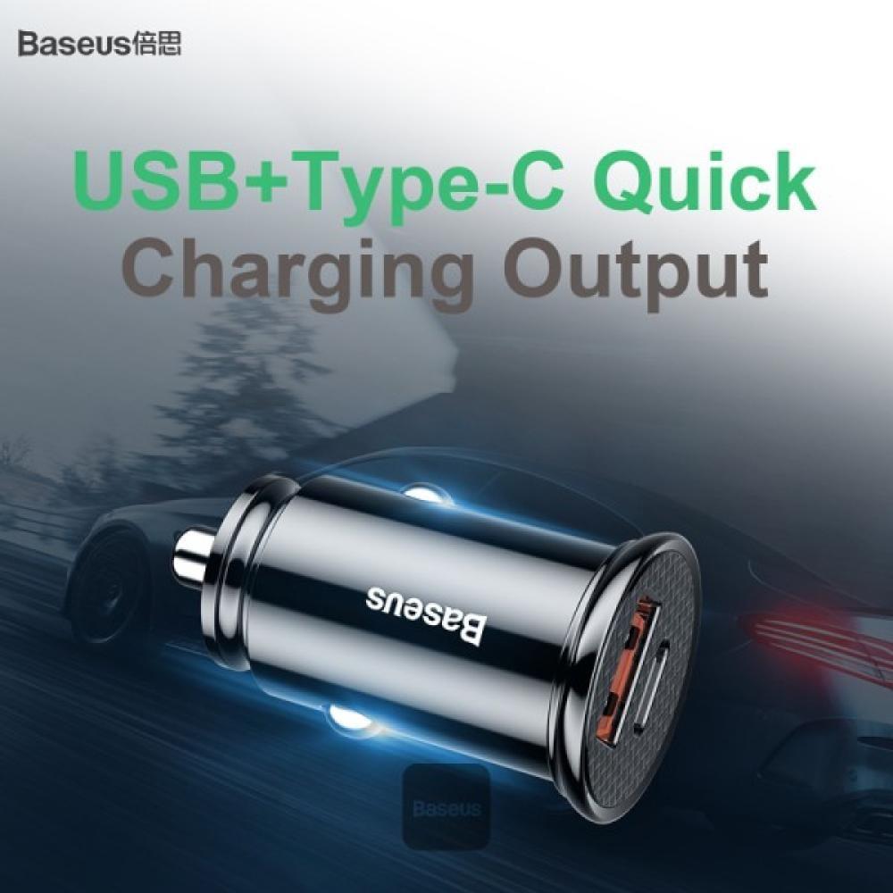 شاحن سيارة بيسوس بلاستيك دائري A+C 30 واط لون اسود