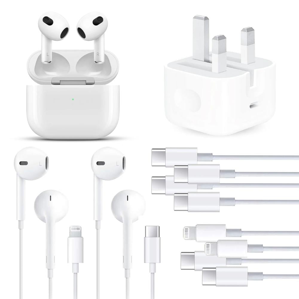 🔹4 كابلات شحن – اثنين منها مخصصة لأجهزة الآيفون (Lightning)، واثنين بمدخل تايب سي (USB-C)